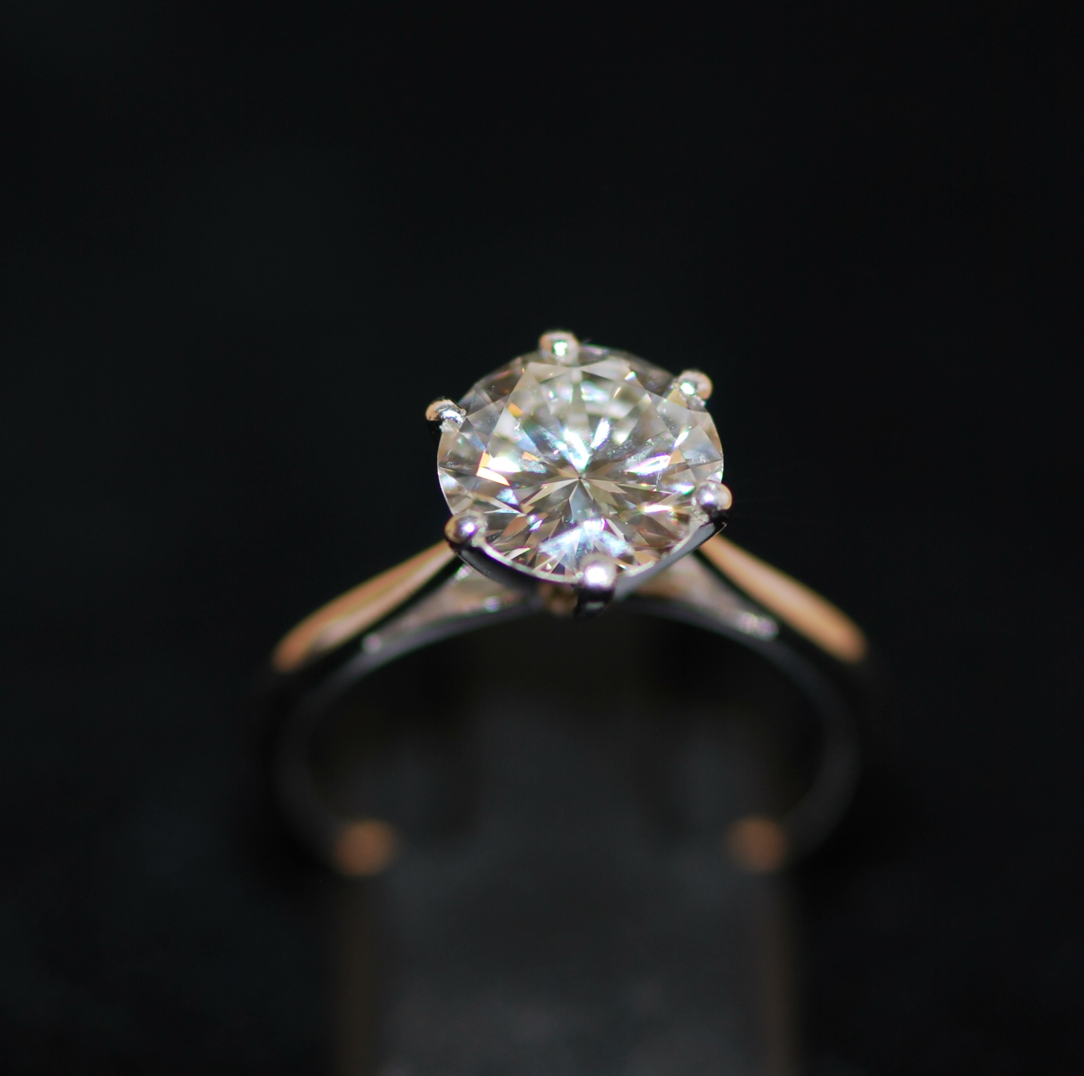 Bague solitaire en or rhodié et platine ornée d’un diamant taille ancienne d’environ 2,4 carats